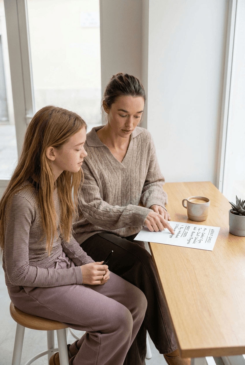 We starten altijd met een kennismaking waarin we luisteren en elkaar leren kennen. Daarna maken we samen haalbare doelen die passen bij de situatie thuis, op school en in de wijk.